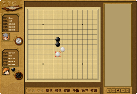 5 、在对局中,以在盘上落下的子又拿起来为拔子,判负。在对局中,一方自行终止比赛,判负。